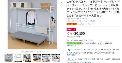【Amazon新生活セール】山善「ヘッドボード ベッドサイドラック(BSR-2318T)」をチェック!