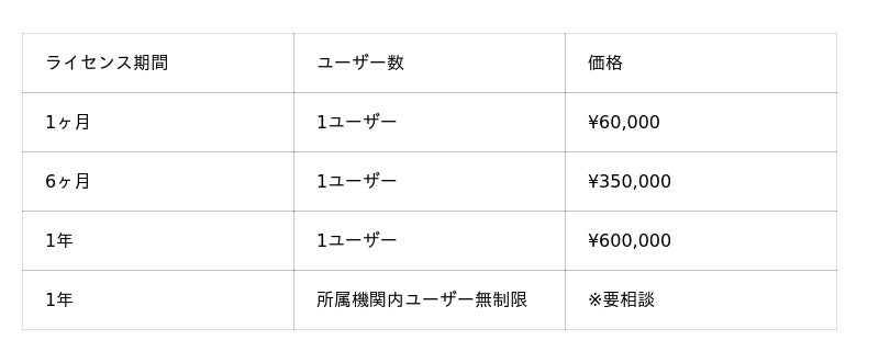 ※上記はアカデミア向けの価格です