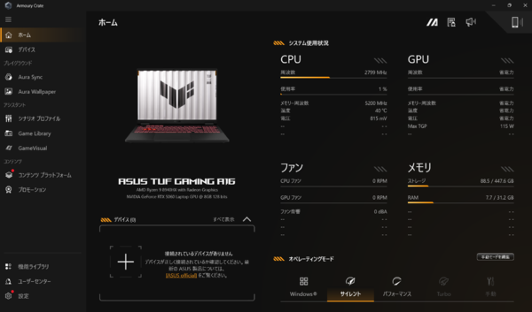 ただスペックが高いだけではありません。ASUSならではの「ユーザーをサポートする独自機能」がしっかり盛り込まれている点も、このPCを推せる理由です。特に注目したいのが、システムを最適化するASUS独自の管理ツール「Armoury Crate」や、最新のAIアシスタント機能との連携です。