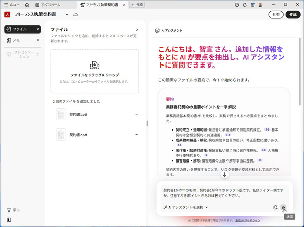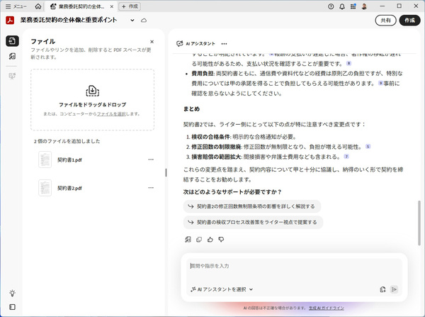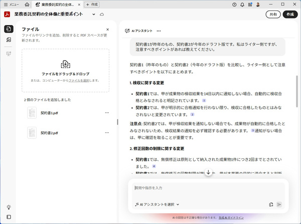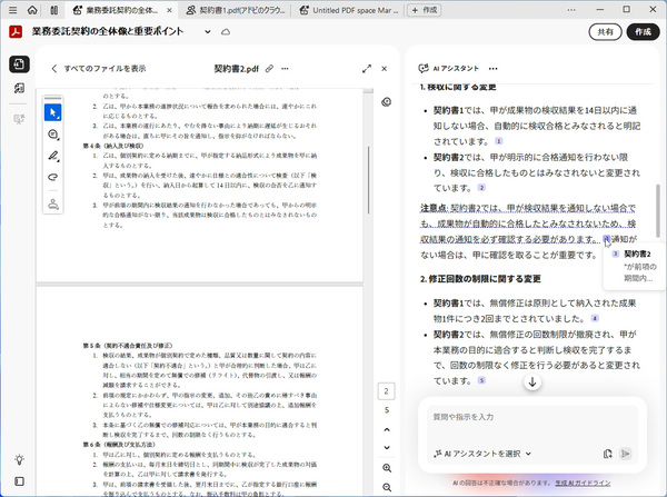 契約書に潜むリスクも見逃さない! AcrobatのAIアシスタントなら文脈を理解したファイル比較が行える