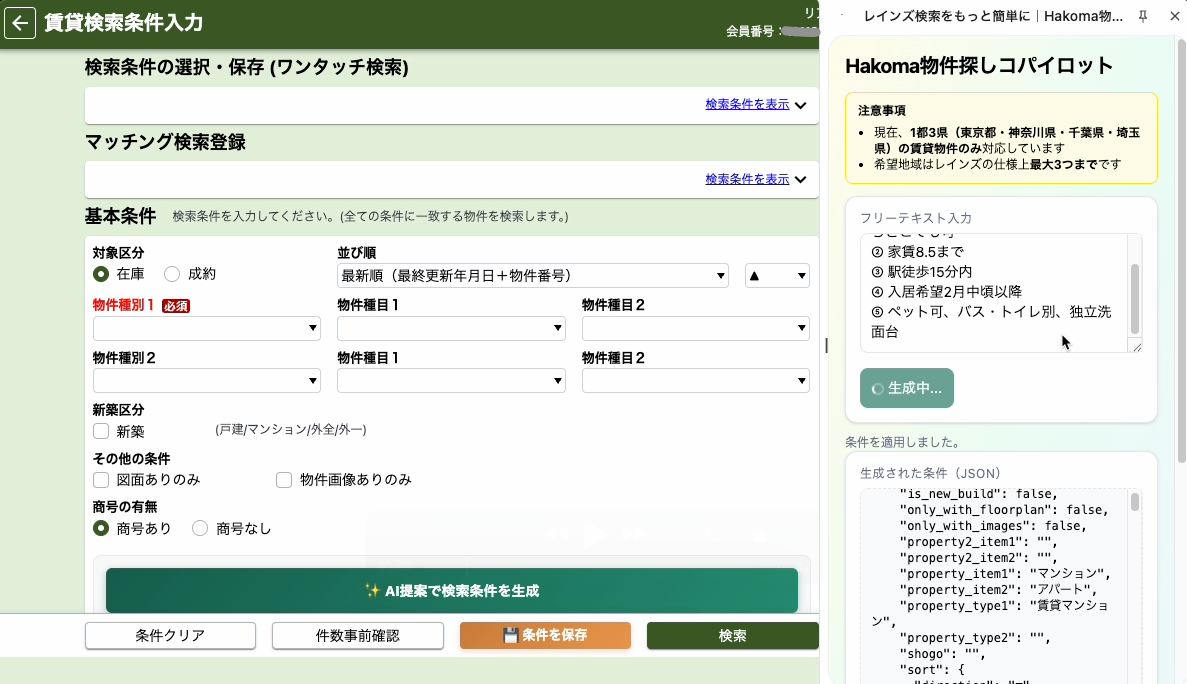 AIがREINS検索を自動化するChrome拡張「Hakoma物件探しコパイロット」β版を無料公開