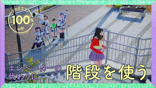 MVでは 「古着を楽しむ(デカボスコア95%)」「マイバッグを活用する(同59%)」「エレベーターの代わりに階段を使用する(同100%)」など、日常で気軽に取り入れられるデカボアクションと、デカボスコアを紹介。エージェントたちがみんなのデカボを褒めるストーリーを通じ、 “無理なく楽しく”実現できる脱炭素への取り組みを知ることができる内容になっています。