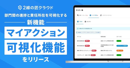 リスク評価の「どこで止まっているか分からない」を解消。2線の匠クラウド、部門間の進捗と責任所在を可視化する新機能「マイアクション可視化機能」をリリース