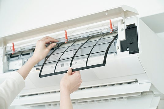 エアコンの使い心地を左右するのがフィルター掃除です。基本的には、一度本体から取り外し、掃除機を使ってホコリを吸い込んでいきます。汚れがひどい場合は薄めた中性洗剤で浸け置き洗いがおすすめです。湿っているとカビの原因にもなるのでよく乾燥させ、本体に戻しましょう。