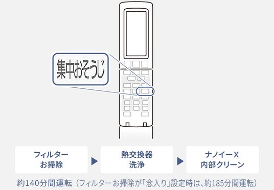 ■エオリア(Xシリーズ)の清潔機能をワンボタンで一括操作できる「集中おそうじ」