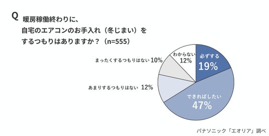 暖房終了後の“冬じまい”については、「必ずする」(19%)、「できればしたい」(47%)と、66%が実施意向を示しました。