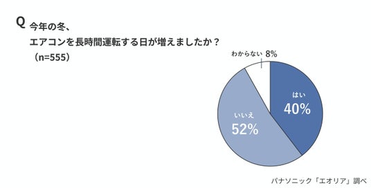 また、変化は“利用時間の長さ”だけにとどまりません。「今年の冬、エアコンを連続運転する日が増えましたか?」との質問には、40%が「はい」と回答しました。