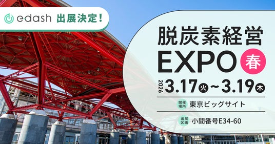 e-dash株式会社(本社:東京都港区、代表取締役社長:山崎冬馬、読み:イーダッシュ、以下「当社」)は、2026年3月17日(火)~19日(木)に東京ビッグサイトで開催される「第8回 脱炭素経営 EXPO【春】」に出展します。