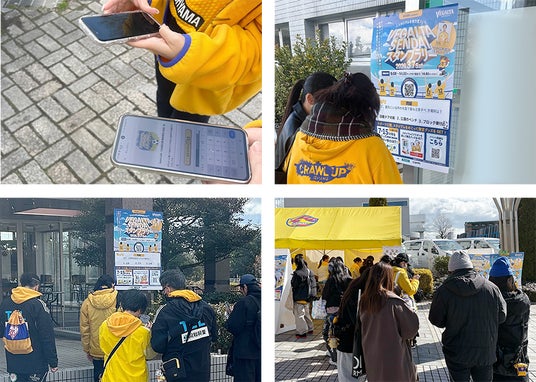 チェックインスポットでは、クイズに回答しながら会場内外を回遊する来場者の姿が多く見られ、試合観戦だけでなく、スタジアム周辺エリアの散策や体験を楽しむきっかけとして活用されました。