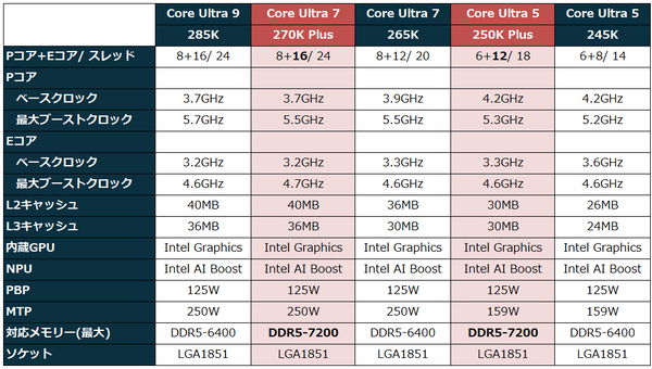 インテル「Core Ultra 7 270K Plus」「Core Ultra 5 250K Plus」を発表!270K Plusは同コア数のCore Ultra 9 285Kより250ドルも安い