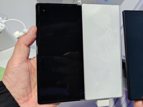 MWC26では新たに「PHANTOM Ultimate G Fold Concept」を発表。「PHANTOM ULTIMATE 2」がファーウェイと同じ、Z字型に折りたたむ構造だったのに対し、今回の新モデルは製品名からわかるように、サムスンと同じ「G型」構造を採用している。ただし、アウトディスプレーの位置はサムスンとは異なり、一番端に来ている。