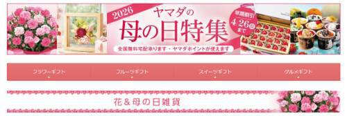 花やスイーツのセットのほか、フルーツや食べ物のギフトなども掲載されており、贈る内容や予算に合わせて選べる。「2026ヤマダの母の日特集」は、母の日の準備を早めに進めたい人が一度見ておきたいページ。