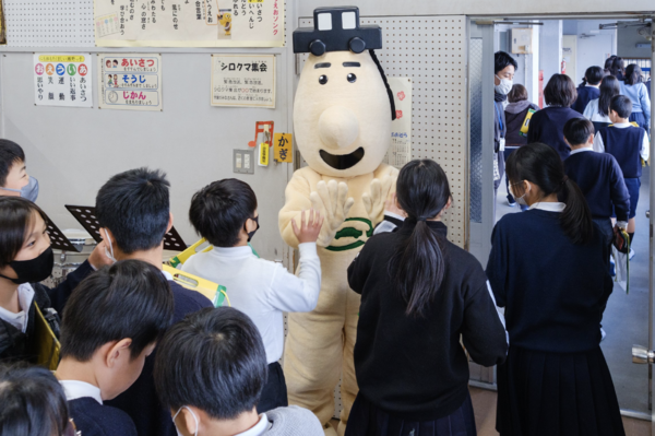 授業の後半では、JARCの公式マスコット「自動車リサイクル博士」も登場! 児童たちの体験を見守りつつ、会場を賑わせてくれました。