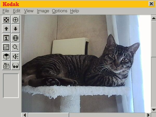 窓際にいたのでWindows95風フレーム。レトロな映りにレトロなウインドウってとこがまたいいセンスしてる。2026年2月 コダック Charmera