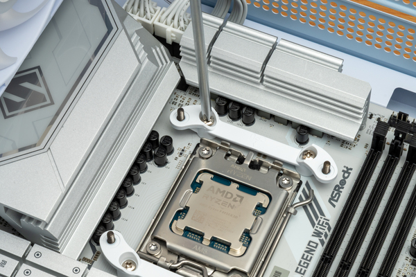AM5環境へのウォーターブロック取り付け工程は、付属品からわかるように最小限に抑えられている。流れとしてはマザーボード標準装備のブラケットを外し、「Steel Legend 360 LCD」付属ブラケットを取り付け、ウォータブロックを固定するだけだ。