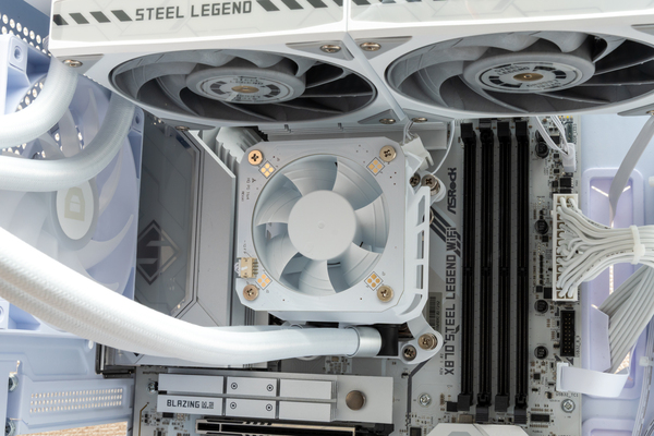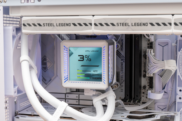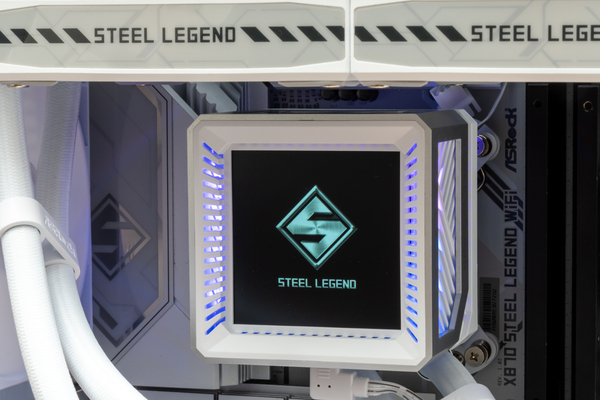 「Steel Legend 360 LCD」を外観から眺めたあとは、Socket AM5環境に取り付けて、実動テストに進んでいこう。PCの構成はASRock製マザーボードの「X870 Steel Legend WiFi」や、Radeon RX 9070 XT 16GB GDDR6搭載ビデオカードの「Radeon RX 9070 Steel Legend 16GB OC」といった、Steel Legendシリーズでコーディネートしてみた。