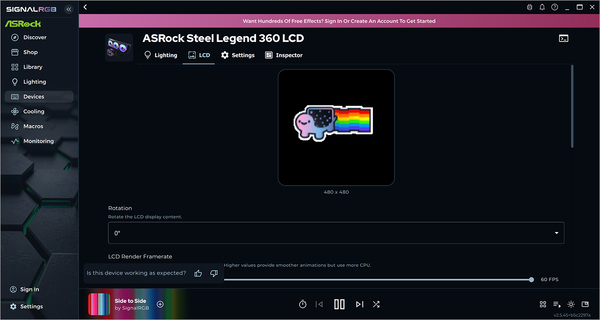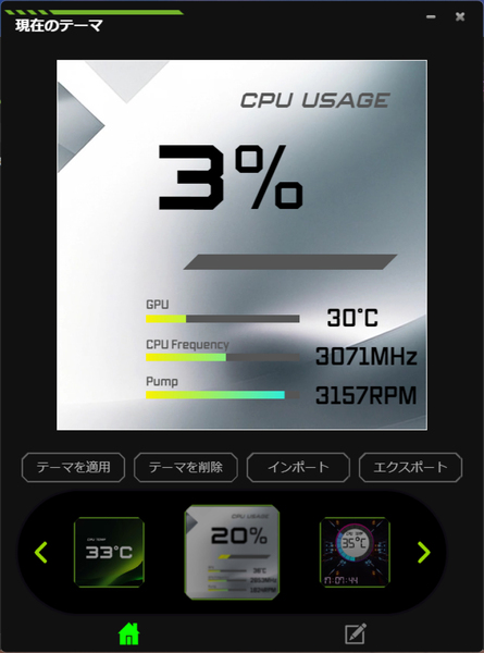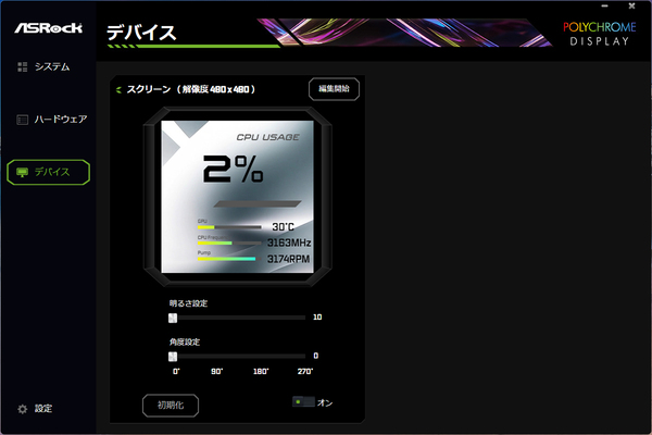 ウォーターブロックトップの3.4インチ液晶パネルカバーは、ソフトウェアの「Polychrome DISPLAY」または、「SignalRGB」から制御できる。
