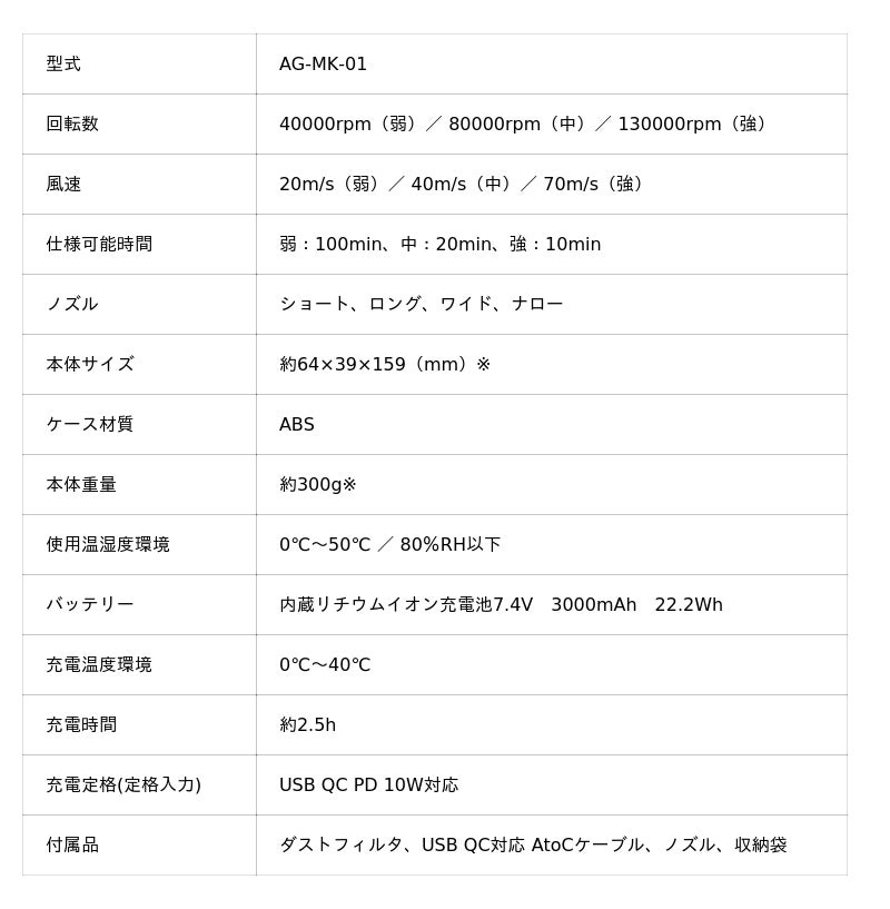 - ハンディエアブローガン(充電ステーション付き)AG-MKシリーズ