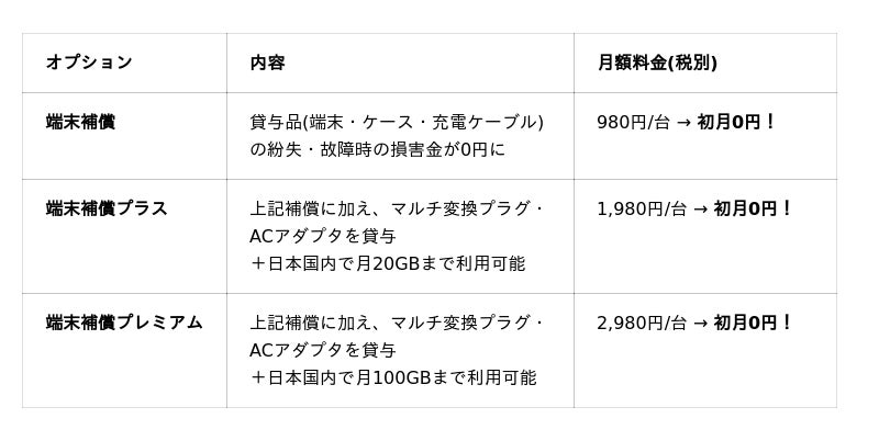 なお、すべての端末補償オプションは初月無料でお試しいただけます。