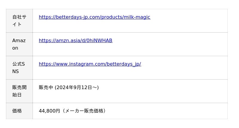 ※*BetterDays調べ 日本国内における「自動ミルクメーカー」として2026年3月現在