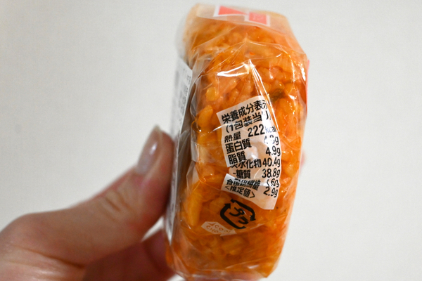 “家庭のナポリタン味”といった印象で、原材料を見ると砂糖はもちろん、玉ねぎなども使われているようです。マーガリンも入っていて、油のコクによるおいしさも感じられます。