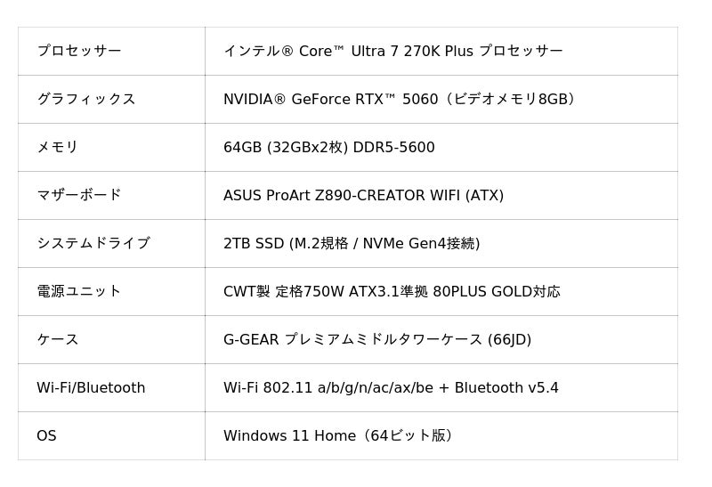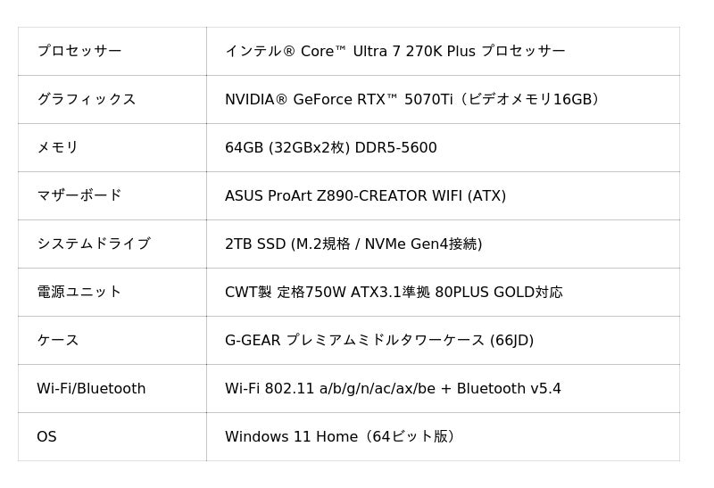【TSUKUMO】G-GEAR、「インテル Core Ultra 7 270K Plus」を搭載したゲーミングPCを3月26日に発売予定