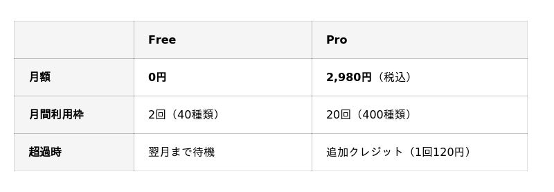 年払い: 29,800円/年(税込)。クレジットカード登録不要で無料プランからすぐに始められます。