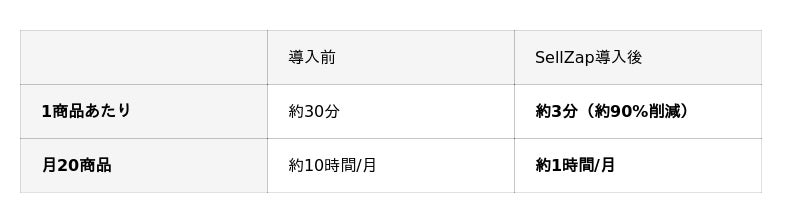 SellZapなら、自分でやるコスパのまま、作業時間だけなくせます。セルザップで、秒出し。