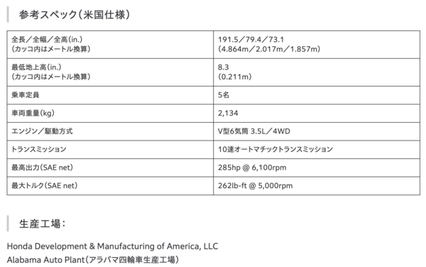 今回の導入は、国土交通省が新たに創設した米国製乗用車に関する認定制度を活用するもの。米国で生産されるモデルを日本市場にも投入することで、ラインアップの拡充を図り、日本のユーザーの多様なニーズに応える狙いとしている。両モデルは、Hondaの北米開発・生産拠点である「Honda Development & Manufacturing of America」で生産されている。