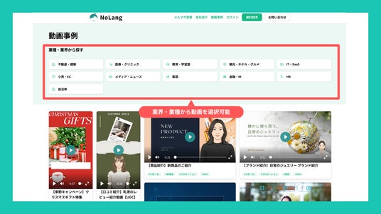 今回公開した動画事例ページは、こうした課題に応えるべく整備した、業種・用途ごとの実際の動画事例を一覧できる専用ページです。業種や用途を問わず、NoLangを活用することでどのような動画コンテンツが実現できるかを可視化し、ご検討中の方が導入後のイメージを具体的に描けるよう支援します。