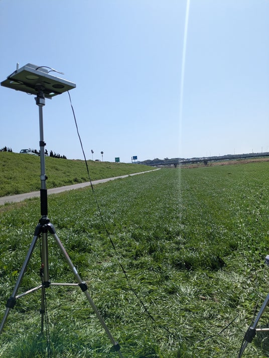 実施場所: 福岡県直方市 遠賀川河川敷目的: 直方市の広大なフィールドを活用した、次世代無線通信技術における移動体通信の挙動検証