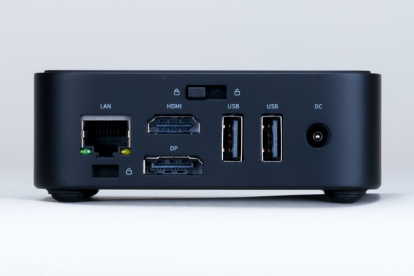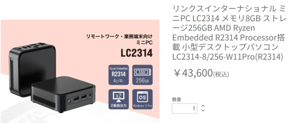 まず驚かされるのが、デスクの片隅に置いても全く邪魔にならない約10cm四方という超コンパクトなボディサイズです。また、小さくて安いからといって中身の性能を侮ってはいけません。CPUには、産業機器などにも使われる「AMD Ryzen Embedded R2314 Processor」を搭載しています。