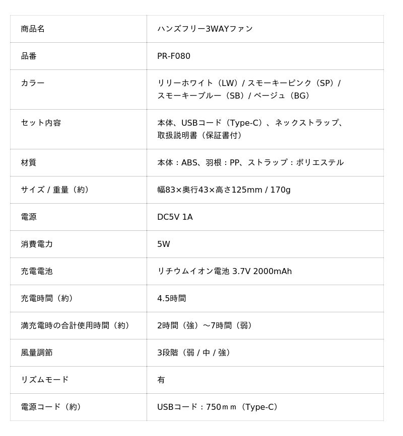 「ハンズフリー3WAYファン」PR-F080