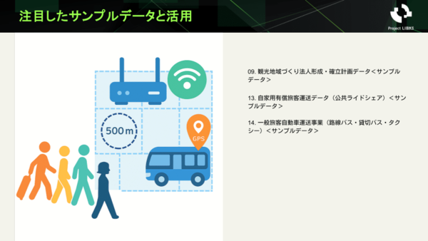 そのために、同チームはLINKSの観光関連データ、公共ライドシェア・バス・タクシーの移動手段データに、フリーWi-Fiのデータから取得する実際の人流データを組み合わせて、広域観光エリアを創出するための新たなオープンデータを作るアイデアを打ち出した。観光客が自治体をまたいでどのように移動しているか、自治体が把握していないスポットに人が集まっているのはなぜか、データから広域観光エリアの構想がみえてくる。