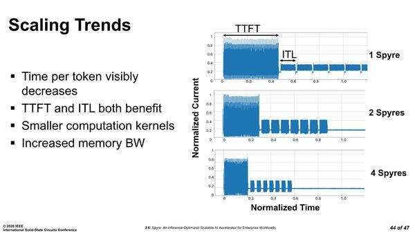 横方向に1本あるだけでだいぶレイテンシーが減りそうな気もするのだが、それは本題ではない。Spyreの場合、周辺部は0.75Vで動作するが、AIコア部は全部0.55Vと結構低めの電圧で動作することになっている。