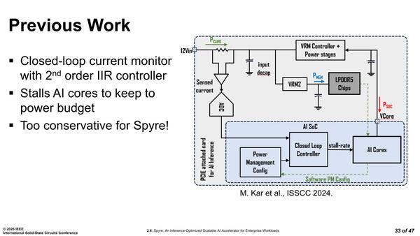 2024年の試作品では、AIコアの必要とする電力を測定して、それにあわせて電圧を調整するシングルループのフィードバック回路で電圧調整をしていた。