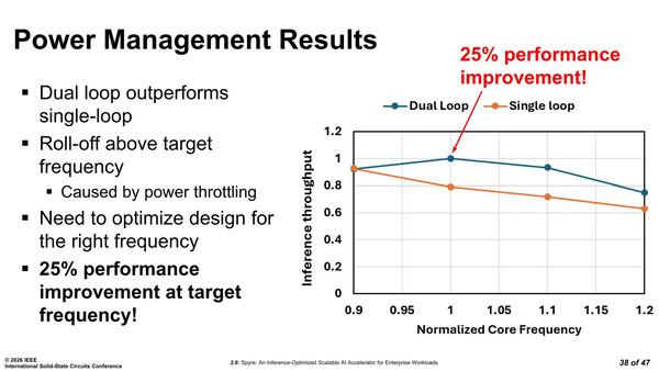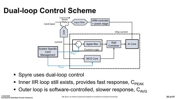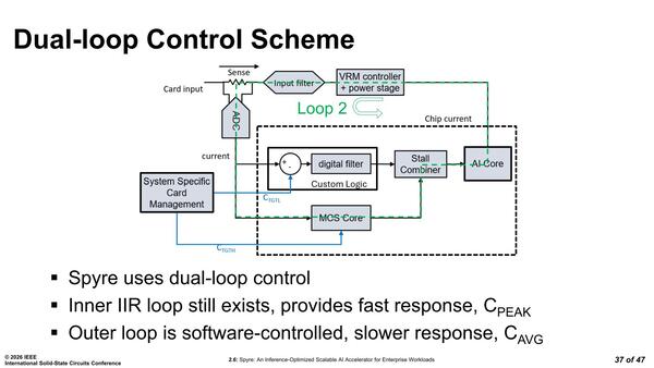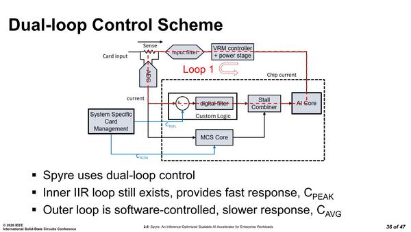 要するに流れる電流を測定し、基準より多くなったら電圧を微妙に下げて電流を減らし、逆に基準より少なかったら少し電圧を上げるという仕組みだ。ところがSpyreはここにデュアルループの仕組みを導入した。