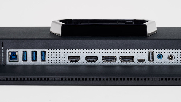 映像入力はかなり充実している。HDMI 2.1×2基、DisplayPort 1.4×2基、USB 3.2 Gen 1 Type-C×1基と5系統だ。そして映像入力から取り込んだ音声出力として5Wスピーカー×2基、3.5mmヘッドホン出力、そしてUSB関連ではUSB 3.2 Gen 1 Type-B(アップストリーム)、USB 3.2 Gen 1 Type-A(ダウンストリーム)×3基を備えている。
