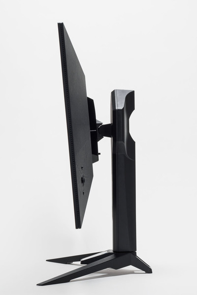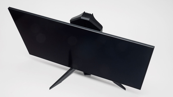 PGO32UFS2Cのパネルは狭額縁設計で画面占有率が高く、ベゼル部分が狭いため、とくにこれといった目立つ意匠がないため、集中力を持続できる。また、スタンド部分には2ヵ所Phantom Gamingロゴがある。1つはスタンドアーム裏側のパネル固定部分で、設置後は視界に入らない。もう1つはベース部分で、視線を下げれば目に入るがあまり意識する場所ではない印象だ。