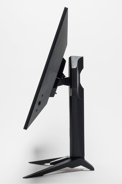 スタンドはアームとベース(台座)の2ピースで構成されている。アームとベースの組み立ては、ベース部の穴に対してアームの突起を挿し込み、ベース裏側からネジを回すだけ。ここはほか多くのディスプレー製品と同様だ。