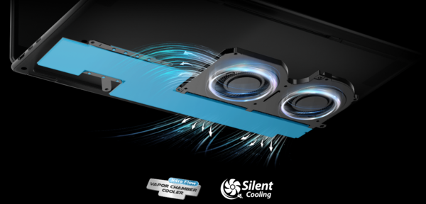 また、冷却機構には「Vapor Chamber Cooler」を採用。これほど薄型の筐体でありながら、ハイエンドクラスのプロセッサーが発する熱を効率よく逃がし、長時間の高負荷作業でも安定したパフォーマンスを維持する。動作音も極めて静かで、カフェや静かなオフィスでの使用も気にならないレベルに仕上がっている。