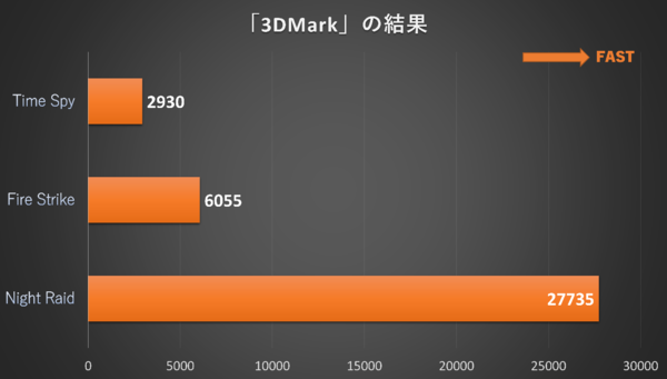 続いて、3D性能を測る「3DMark」のうち、「Night Raid」と「Fire Strike」「Time Spy」を実行してみた。