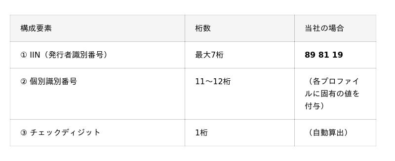 eSIMプロファイルを発行するためには、各プロファイルに対して固有のICCIDを付与する必要があります。ICCIDはIINを起点として構成されるため、IINの保有はICCID発番の独立性を確保するための技術的な前提条件となります。