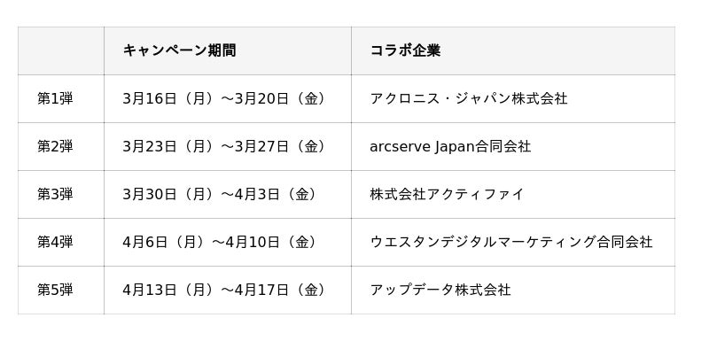 そこで、バックアップの大切さを広めるべく、ハードウェアメーカー様やソフトウェアメーカー様とともに、アイ・オー・データ機器公式X(https://x.com/io_data)にて連続コラボキャンペーンを開催いたします。