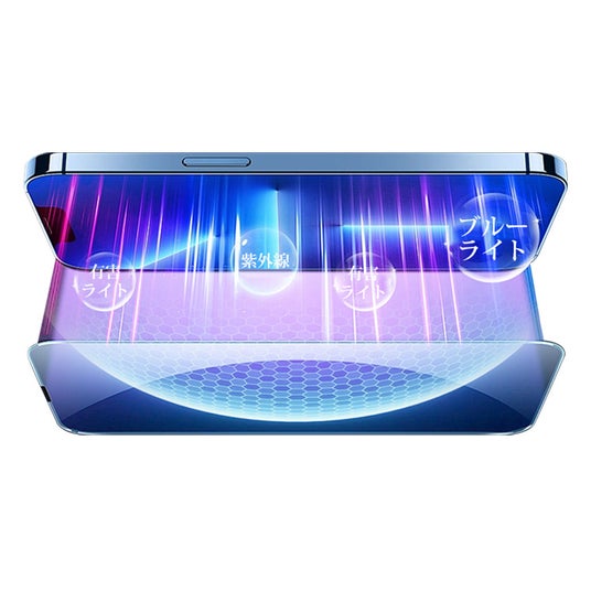 リアタイプは約 99%の高透過率を実現し、画面本来の鮮明さをそのままにクリアな視認性を楽しめます。ブルーライトカットタイプは有害なブルーライトを効果的に遮断し、長時間のスマホ使用による目の疲れを軽減してくれます。覗き見防止タイプは斜めからの画面覗き見を防ぎ、公共の場でもプライバシーをしっかり守り、安心して使用することができます。