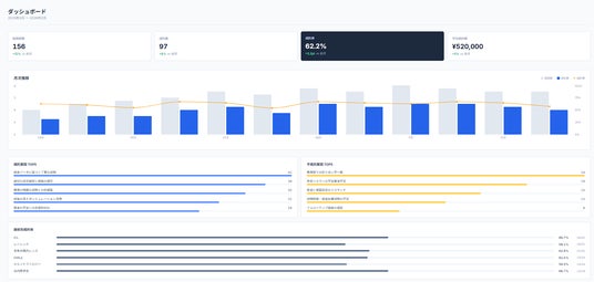 そこで本サービスでは、AIがカウンセリング内容を分析し、成約要因・未成約要因を自動で分類・一覧化します。さらに、未成約理由のランキング表示、担当者別の傾向比較、患者属性別のクロス集計、録音分析サマリー、改善アクション候補の提示などを通じて、現場改善に活用しやすい形で情報を整理します。