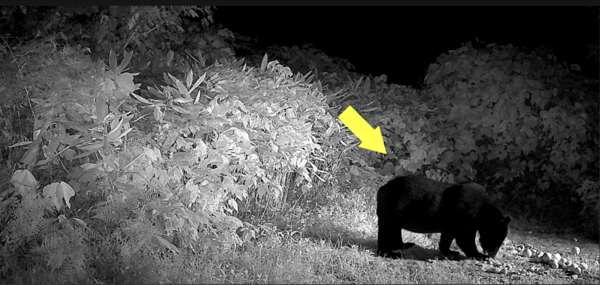 「ライトと警報が鳴ったところで、熊が気づいてびっくりしている写真です。この後すぐに、藪の方に逃走したというような……追い払いの様子を確認することができました」
