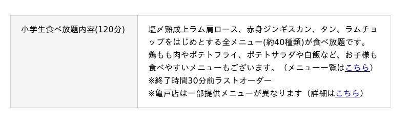 「小学生食べ放題」詳細