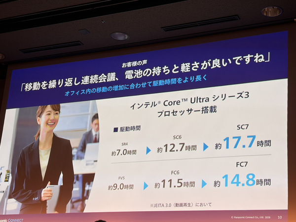 パナソニック コネクトは3月16日、モバイルノートPC「レッツノート」の最新ラインアップ「SC7」「FC7」「NC7」シリーズを発表した。