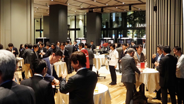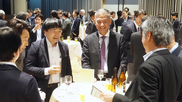 講演終了後の第2部は、懇親会パーティとなった。登壇者、出展者、来場者が立食形式でテーブルに着き、交流を深めた。“全員がOCXパートナー”という関係のため、各テーブルは最初から打ち解けたムードであり、今後の協業のきっかけになるような交流も生まれたようだ。